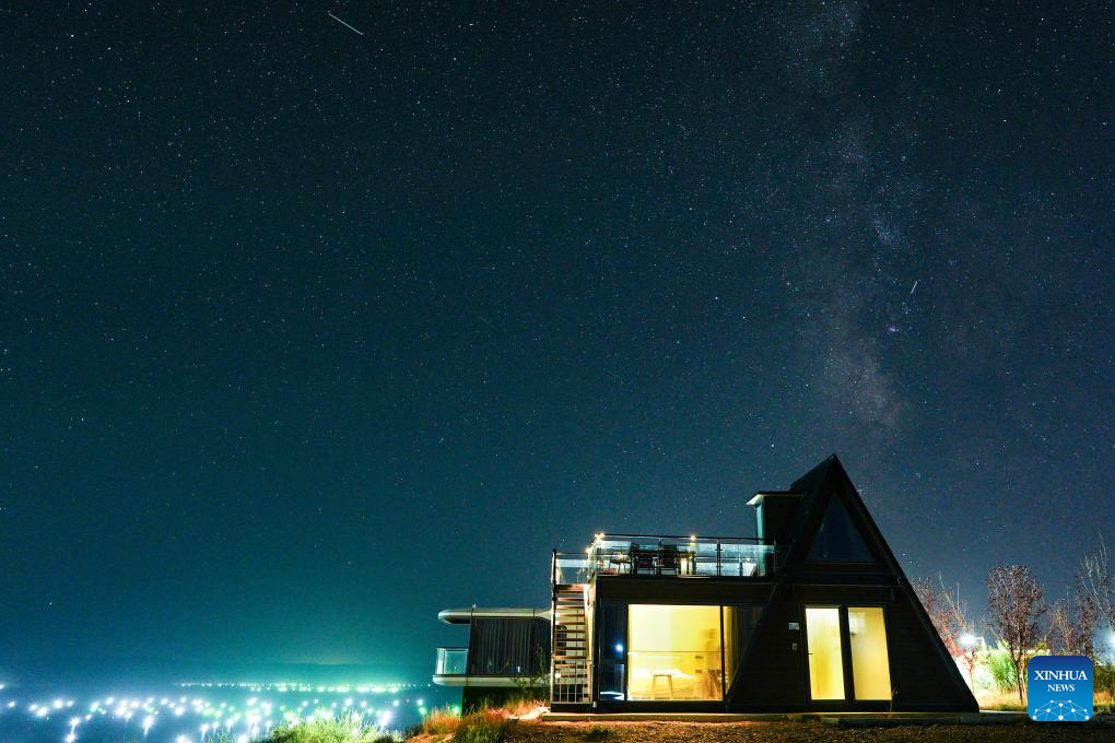 A homestay is pictured in the Longyang Gorge area in Gonghe County of Hainan Tibetan Autonomous Prefecture, northwest China's Qinghai Province, Oct. 17, 2025. Each year from late August to late November, fishermen in Longyang Gorge are busy harvesting silver fish.