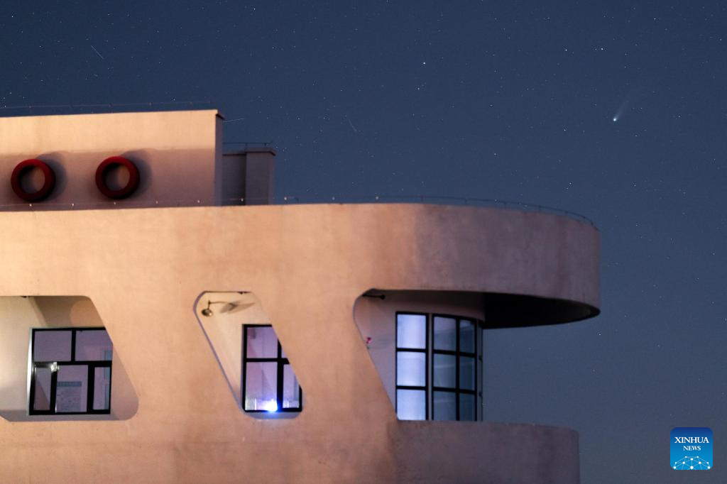 This photo taken on Oct. 21, 2025 shows the comet C/2025 A6 (Lemmon) in the sky over Harbin City, northeast China's Heilongjiang Province. (Photo by Li Xin/Xinhua)