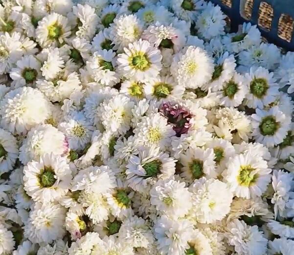 Photo shows freshly harvested pristine white chrysanthemums, which is part of an ecological initiative launched to increase people's incomes while halting the expansion of the Taklimakan Desert in northwest China's Xinjiang Uygur Autonomous Region.