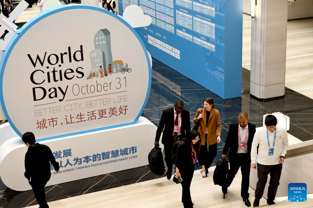 This photo taken on Oct. 26, 2025 shows the 2025 SDG Cities Global Conference in east China's Shanghai. Themed "Innovative Development Towards People-Centered Smart Cities" this year, the 2025 SDG Cities Global Conference kicked off here on Sunday. (Xinhua/Fang Zhe)