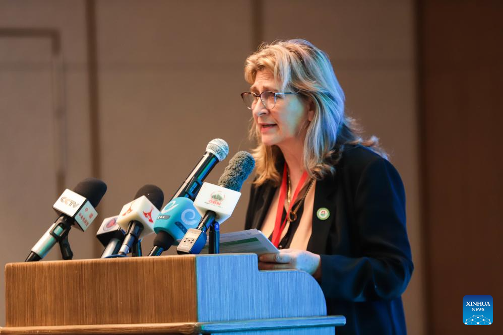 President of the African Academy of Sciences Lise Korsten speaks at the 2025 General Assembly of the China-Africa Agricultural Science and Technology Innovation Alliance in Addis Ababa, Ethiopia's capital, on Oct. 27, 2025. The 2025 General Assembly of the China-Africa Agricultural Science and Technology Innovation Alliance (CAASTIA) kicked off on Monday in Addis Ababa, with a focus on cooperation for Africa's food security and agricultural modernization. (Photo by Michael Tewelde/Xinhua)