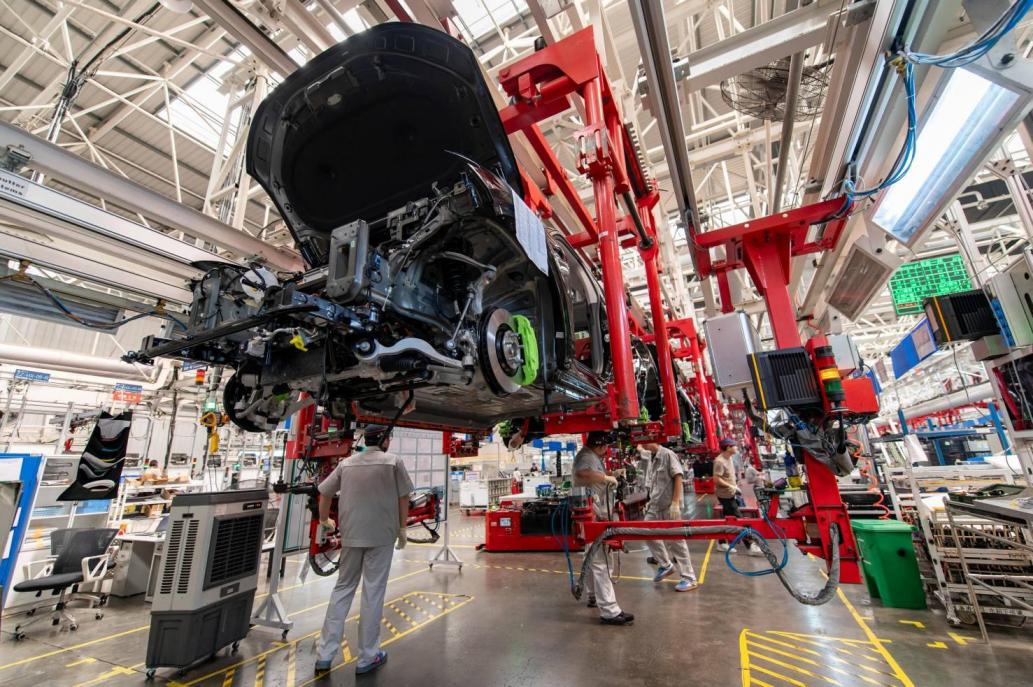 New energy vehicles are assembled at a manufacturing facility of Chinese carmaker Leapmotor in Jinhua, east China's Zhejiang province. (Photo/Hu Xiaofei)