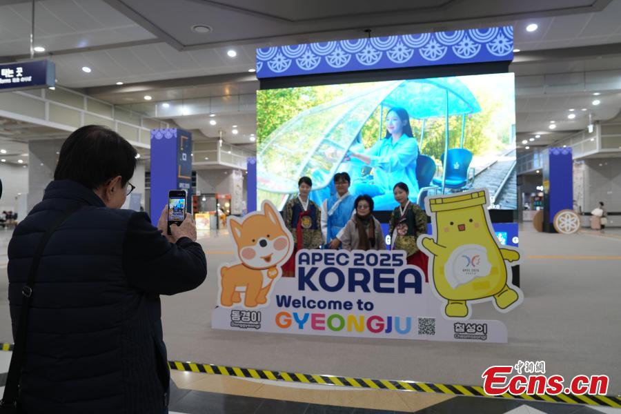 People take photos at the Gyeongju Train Station in the Republic of Korea (ROK), Oct. 27, 2025. (Photo: China News Service/Liu Xu)