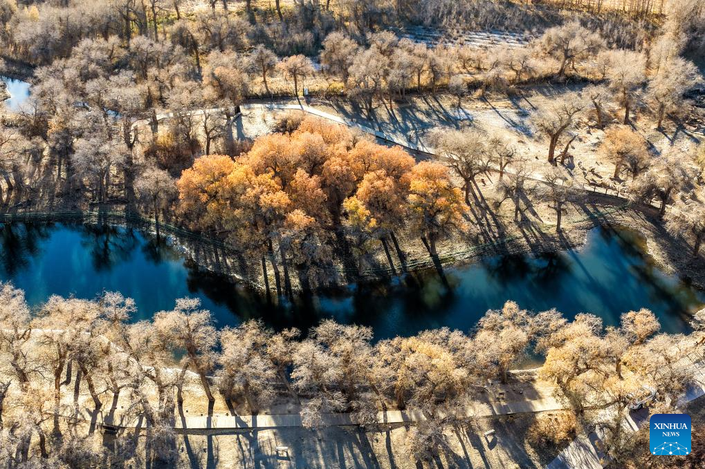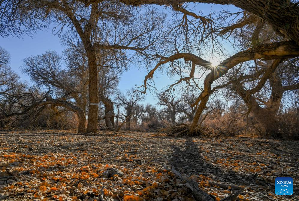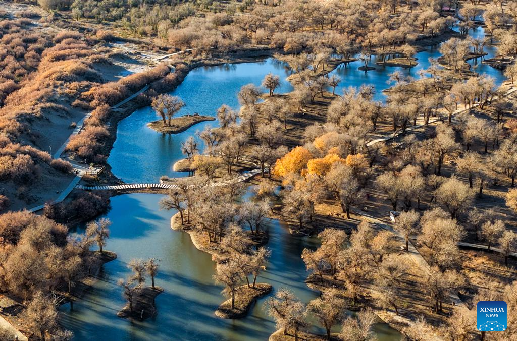 This photo taken on Oct. 30, 2025 shows the scenery of a populus euphratica forest in Ejina Banner, north China's Inner Mongolia Autonomous Region. (Xinhua/Lian Zhen)