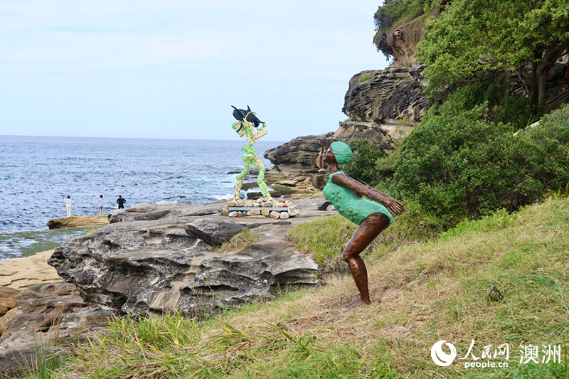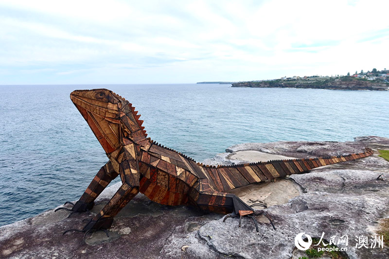 A large-scale sculpture on display, perfectly blending with Sydney's stunning coastal scenery at the 27th Sculpture by the Sea. (Photo/Liu Zitong)
