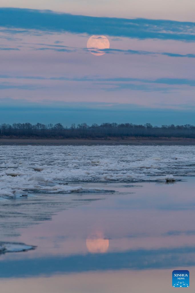 A full moon is pictured over the Heilongjiang River in Fuyuan, northeast China's Heilongjiang Province, Nov. 5, 2025. Lunar observers will be able to see the largest and brightest full moon of 2025 when the moon reaches its closest point to Earth at 9:19 p.m. Beijing Time on Wednesday. (Photo by Li Yongjun/Xinhua)