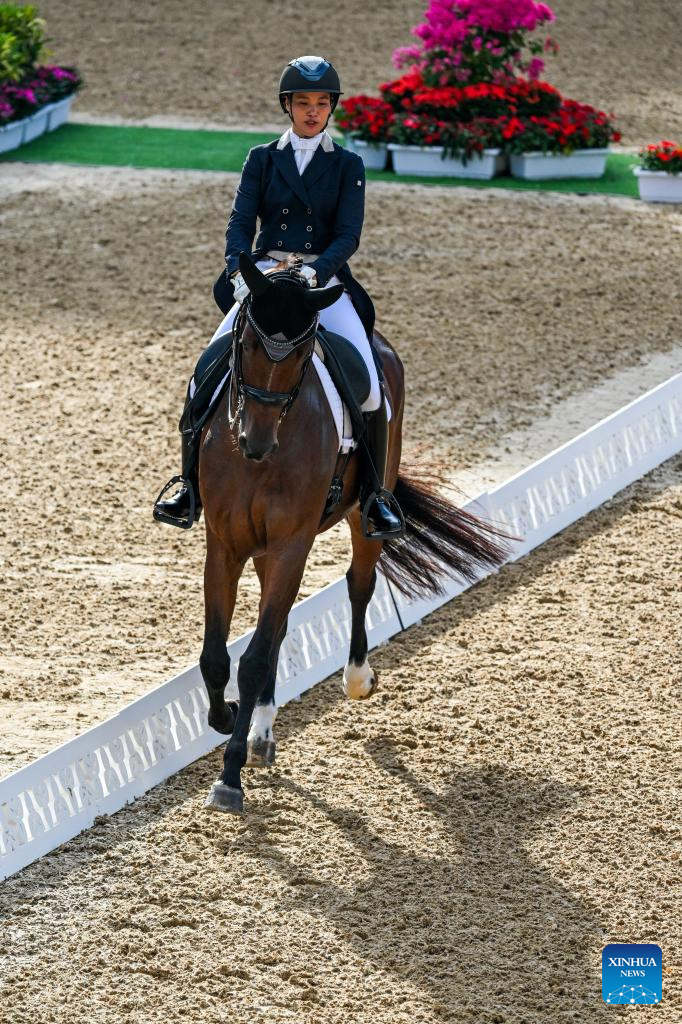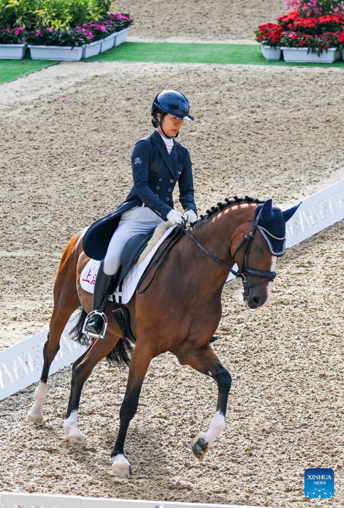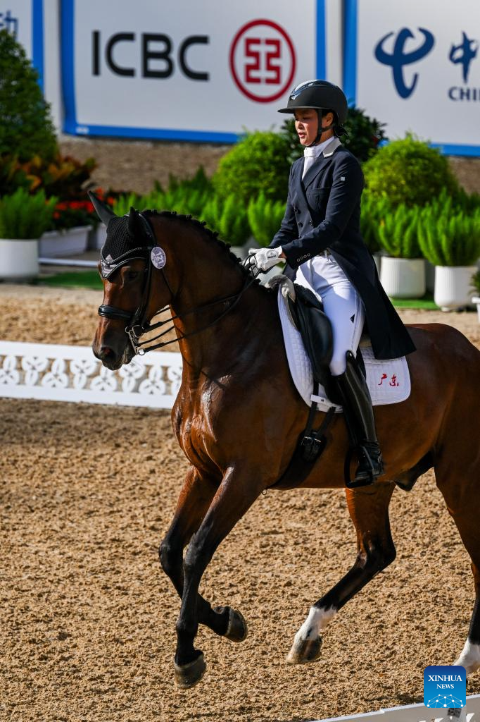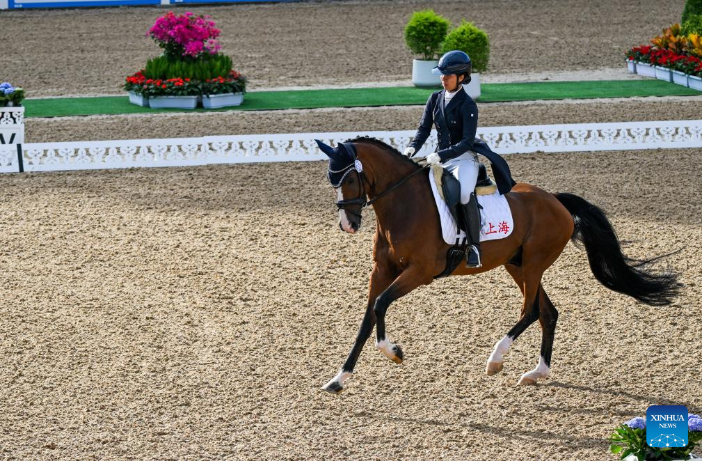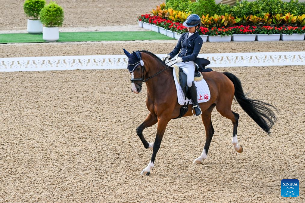 Xu Mofei of Shanghai competes during the equestrian dressage team final at China's 15th National Games in Shenzhen, south China's Guangdong Province, Nov. 10, 2025. (Xinhua/Lian Zhen)