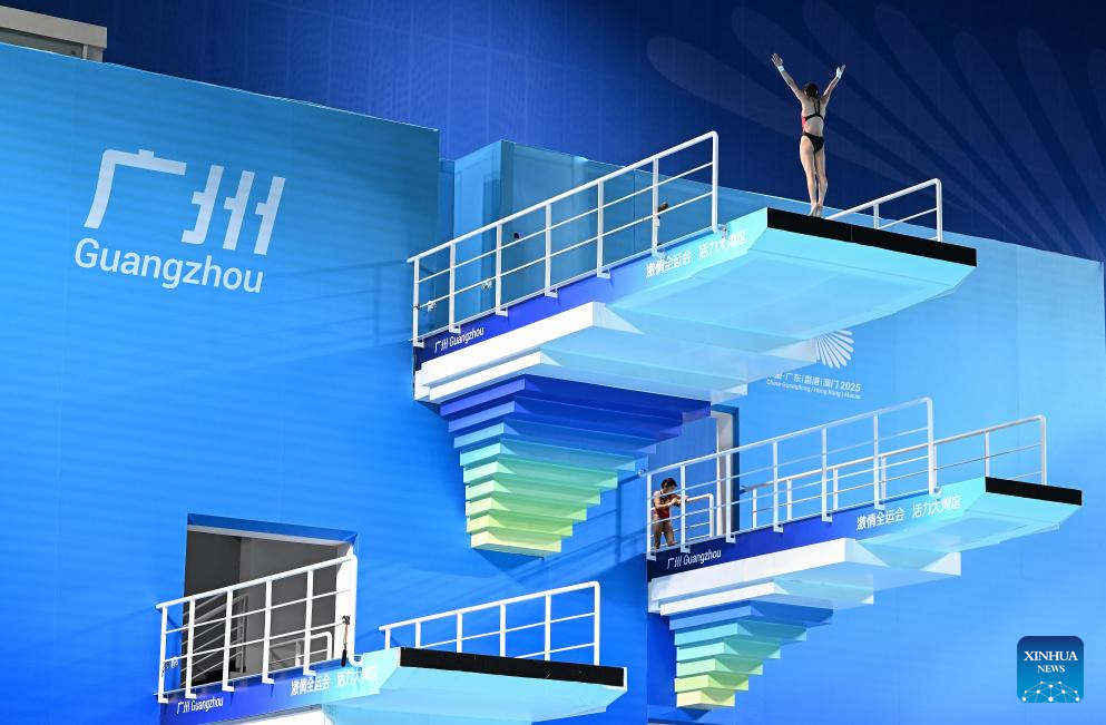 Lu Wei of Sichuan competes during the women's 10m platform final of diving at China's 15th National Games in Guangzhou, south China's Guangdong Province, Nov. 10, 2025. (Xinhua/Tang Yi)