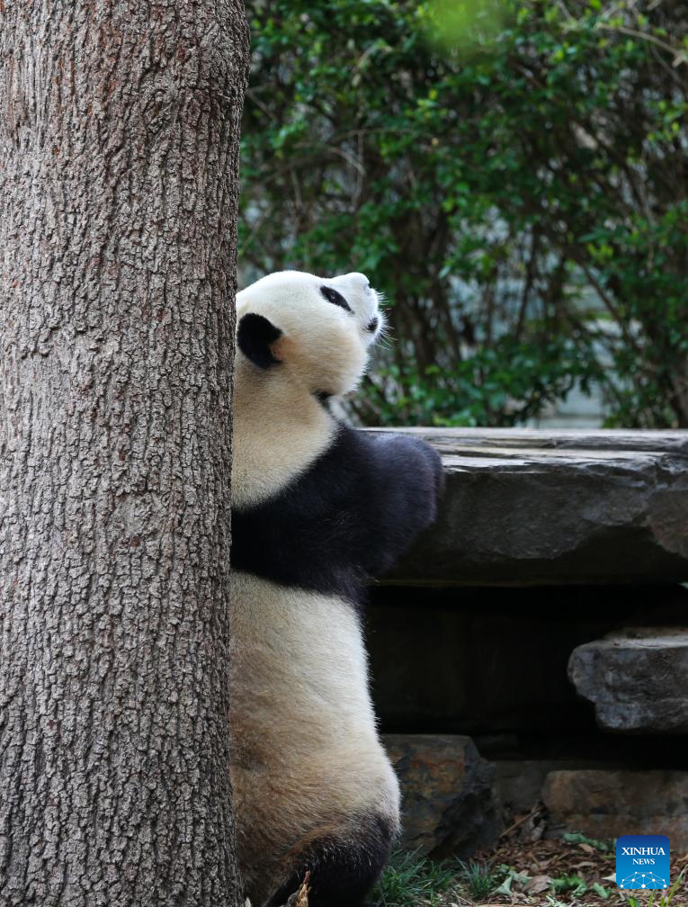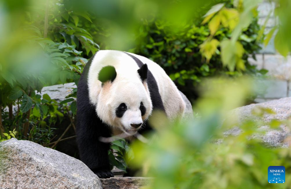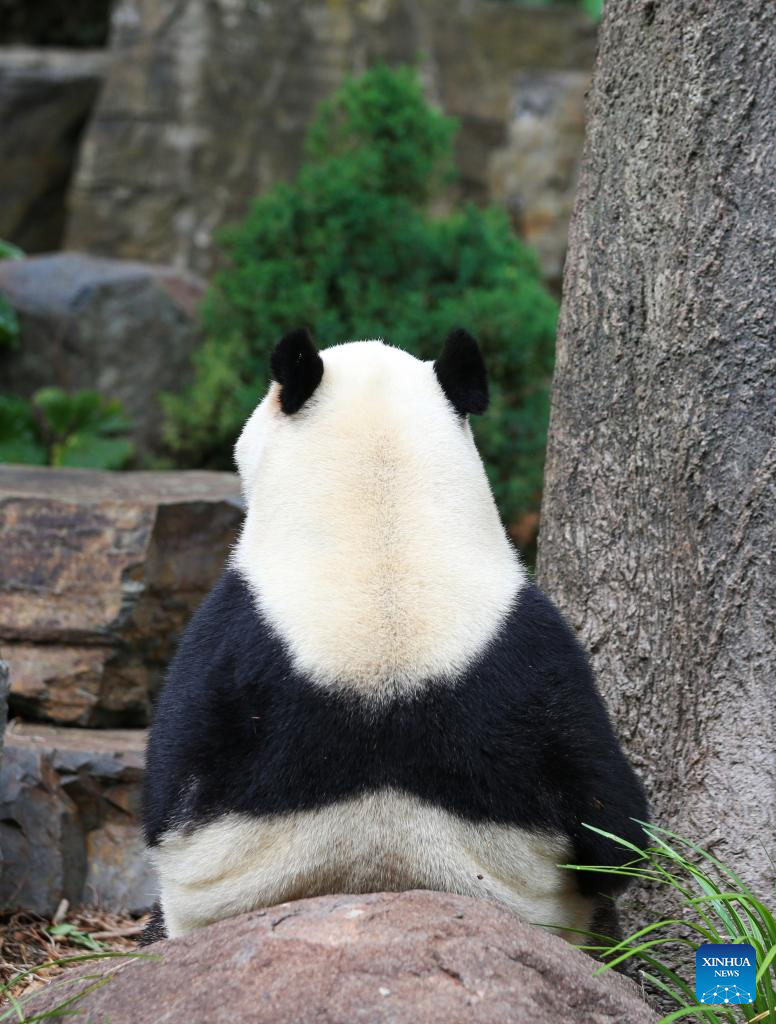 Giant panda Xingqiu takes a walk at Adelaide Zoo in Adelaide, Australia, Nov. 10, 2025. The giant panda pair Xingqiu, a male, and Yilan, a female, arrived in Adelaide on Dec. 15, 2024. According to the contract, they will spend ten years at Adelaide Zoo, replacing the pair Wangwang and Funi who returned to China last November after 15 years in Australia. (Xinhua/Ma Ping)