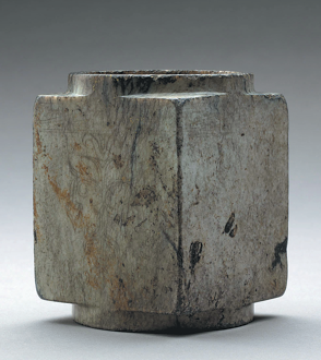 A ritual jade known as cong unearthed from pit No 3. CHINA DAILY
