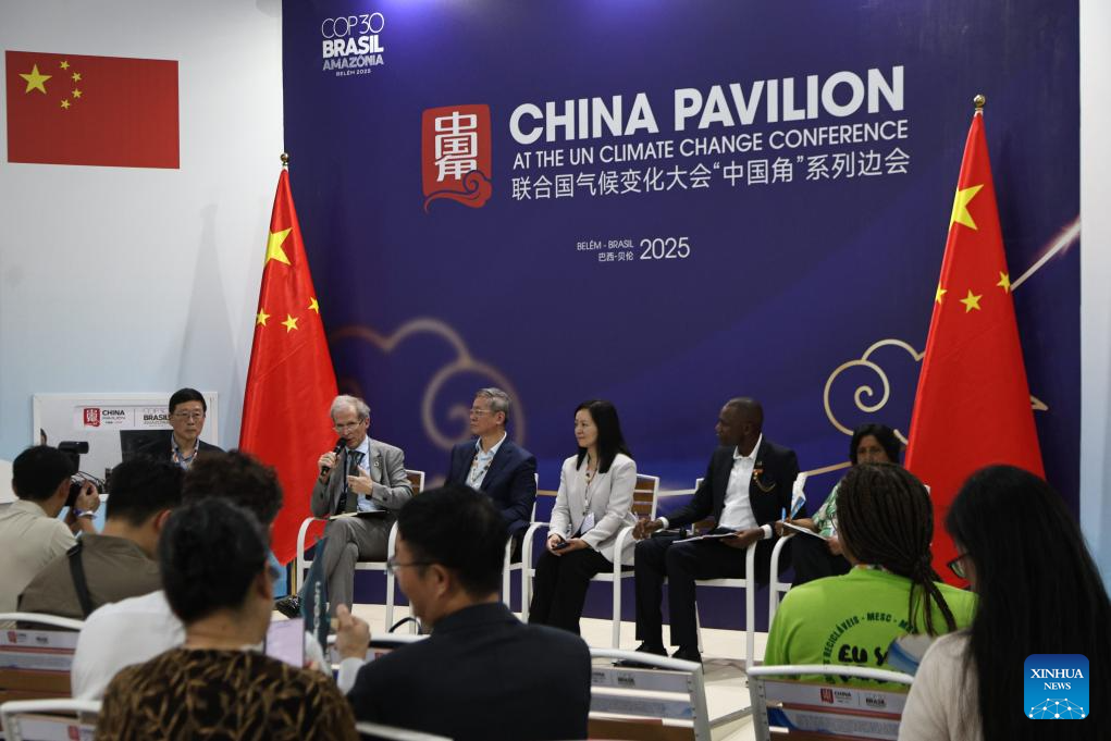A session focusing on ecological civilization and the practice of building a "Beautiful China" is held during the 30th UN Climate Change Conference (COP30) in Belem, Brazil, Nov. 10, 2025. On Monday, the "China Pavilion" series of the COP30 side events kicked off in Belem, with the first session focusing on ecological civilization and the practice of building a "Beautiful China."