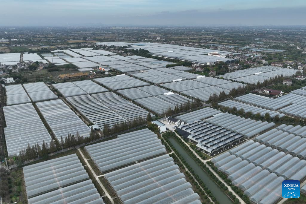 This aerial drone photo taken on Nov. 11, 2025 shows a citrus orchard in Lianshi Town of Nanxun District, Huzhou City of east China's Zhejiang Province. The citrus fruits in Lianshi Town have entered the harvest season recently, attracting tourists to enjoy fruit picking here. (Xinhua/Huang Zongzhi)