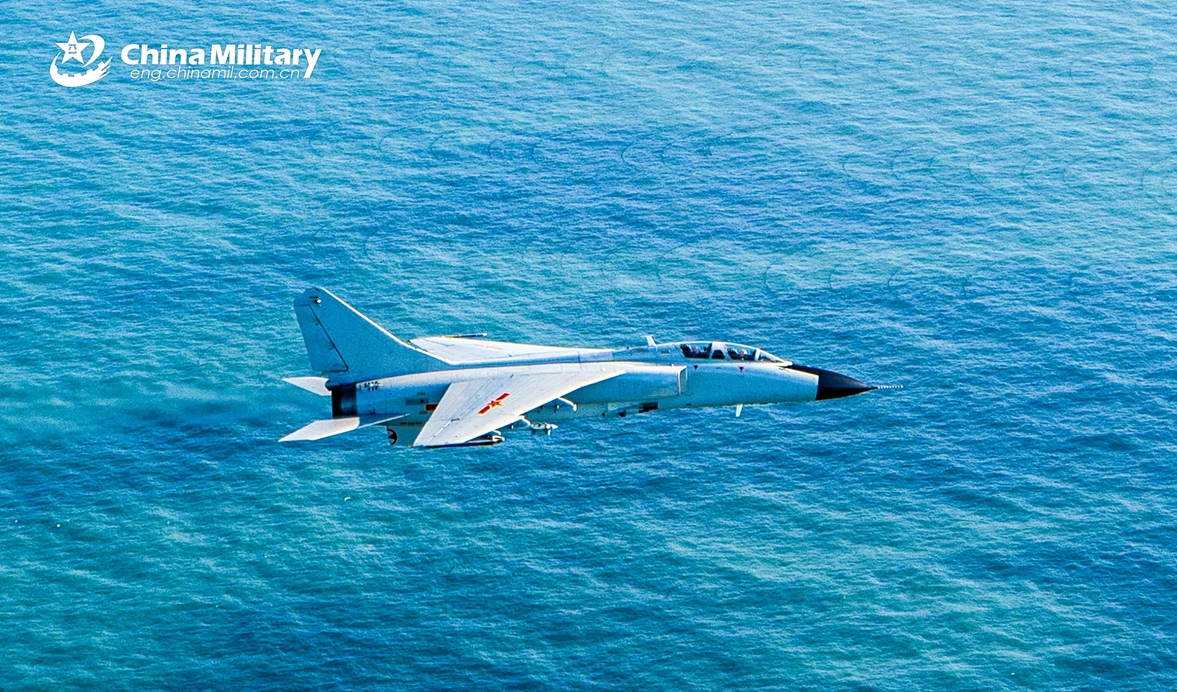 A JH-7A fighter bomber attached to an aviation brigade of the Chinese PLA Air Force flies above sea during an air-to-surface operation training exercise on November 4, 2025. (eng.chinamil.com.cn/Photo by Zhang Yue)