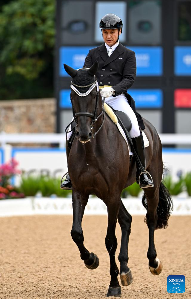 Liu Tao of Xinjiang competes during the equestrian dressage individual final at China's 15th National Games in Shenzhen, south China's Guangdong Province, Nov. 12, 2025. (Xinhua/Feng Kaihua)
