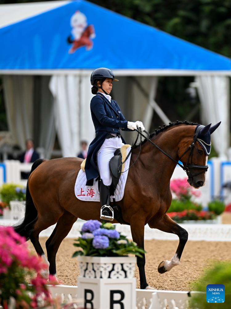 Xu Mofei of Shanghai competes during the equestrian dressage individual final at China's 15th National Games in Shenzhen, south China's Guangdong Province, Nov. 12, 2025. (Xinhua/Feng Kaihua)