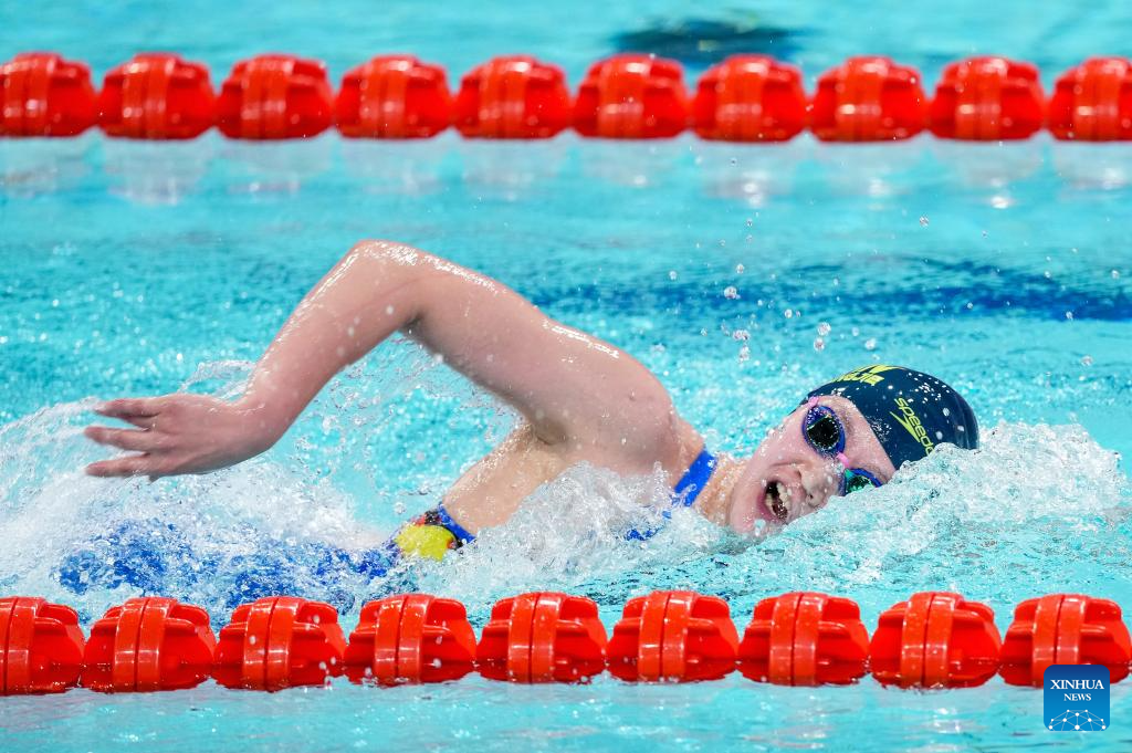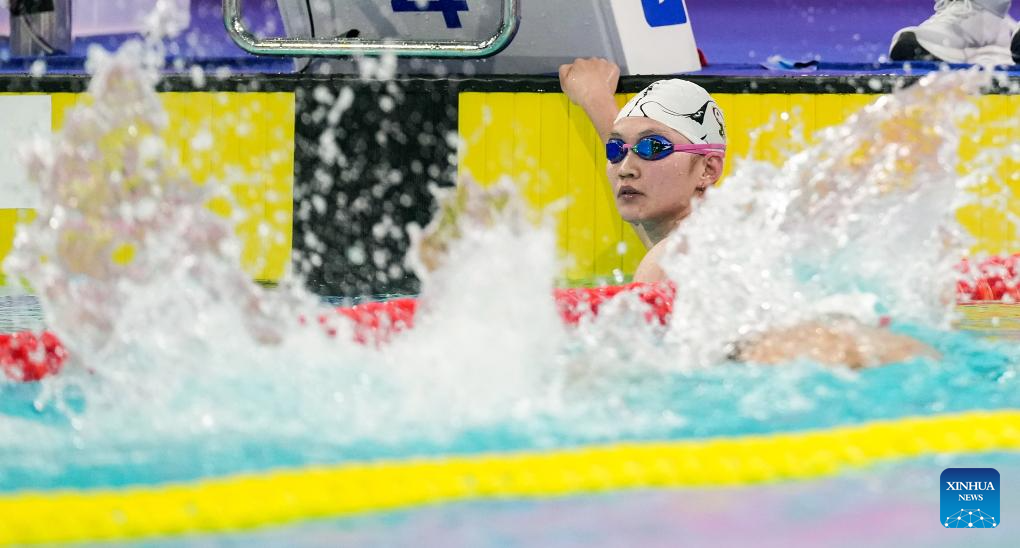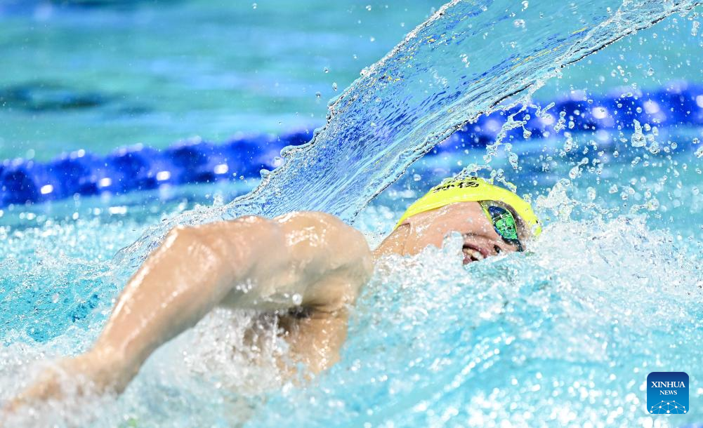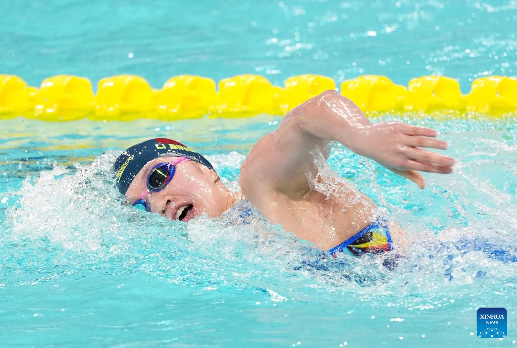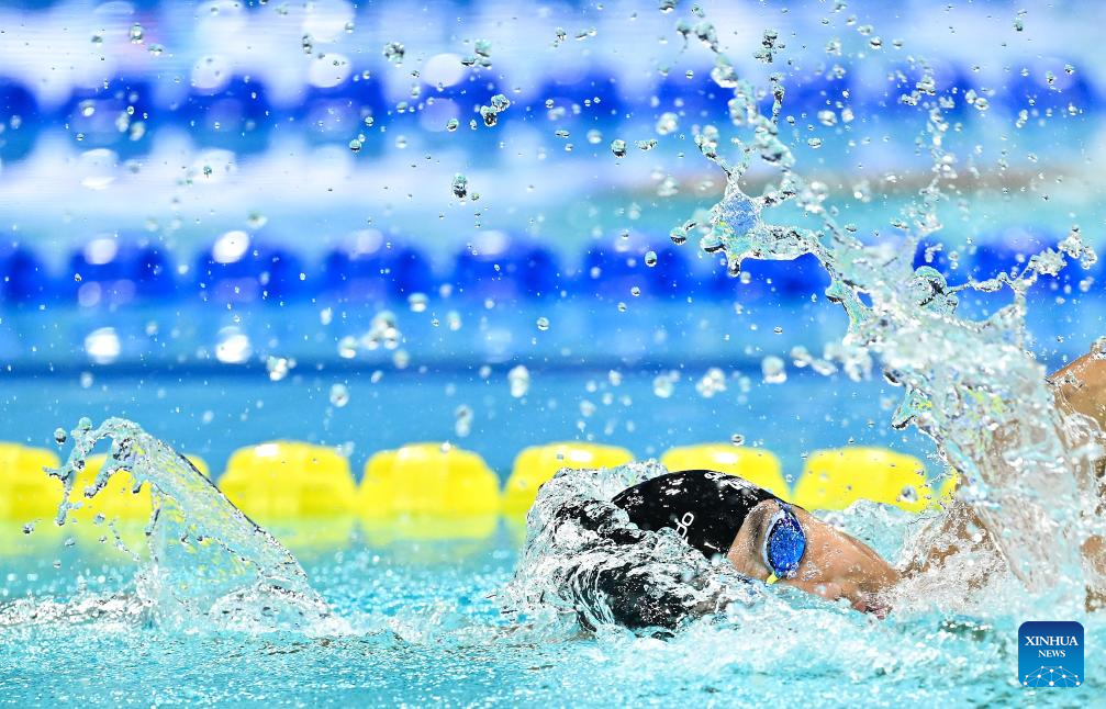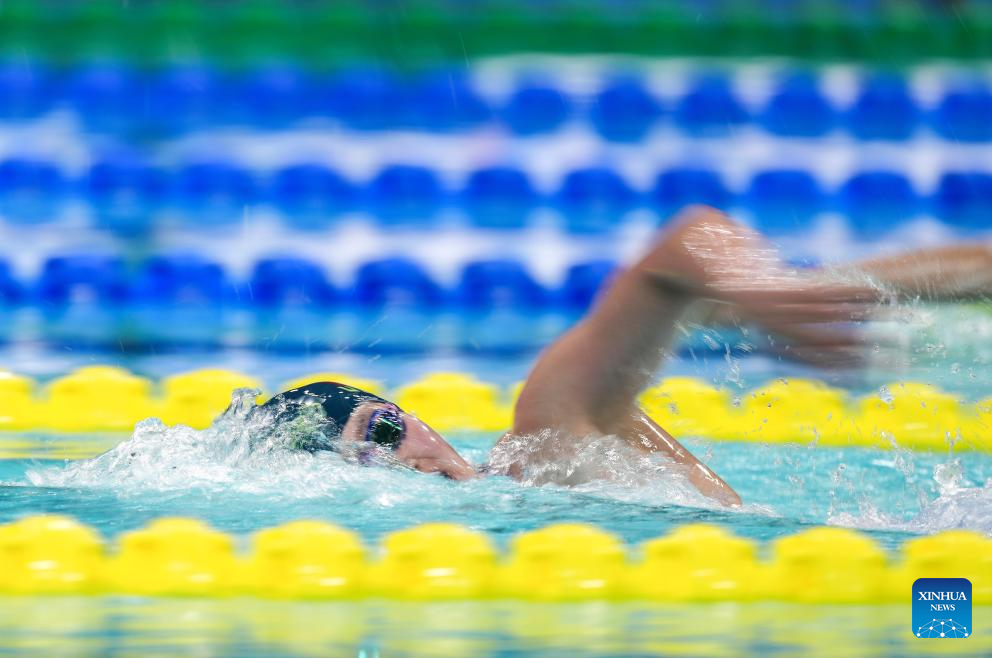 Li Bingjie of Hebei competes during the women's 1500m freestyle final of swimming at China's 15th National Games in Shenzhen, south China's Guangdong Province, Nov. 12, 2025. (Xinhua/Xue Yuge)