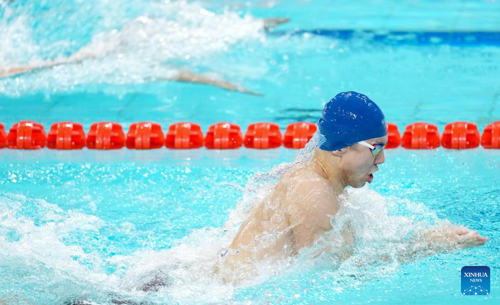 Pan Zhanle of Zhejiang competes during the men's 200m freestyle final of swimming at China's 15th National Games in Shenzhen, south China's Guangdong Province, Nov. 12, 2025. (Xinhua/Xue Yuge)