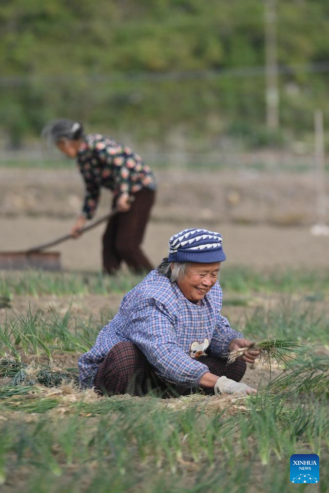 Villagers plant chives in Longxing Village of Sandu Town in Liuzhou City, south China's Guangxi Zhuang Autonomous Region, Nov. 11, 2025. Sandu Town has in recent years promoted the standardized and industrialized production of chives, and developed an integrated business system that ranges from planting and processing to sales and service. (Xinhua/Huang Xiaobang)