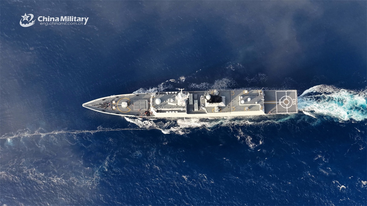 The guided-missile frigate Dali (Hull 553) attached to a flotilla with the navy underthe Chinese PLA Southern Theater Commandsails at sea during a replenishment-at-sea training exercise in late October, 2025. (eng.chinamil.com.cn/Photo by Yu Chuanjun)