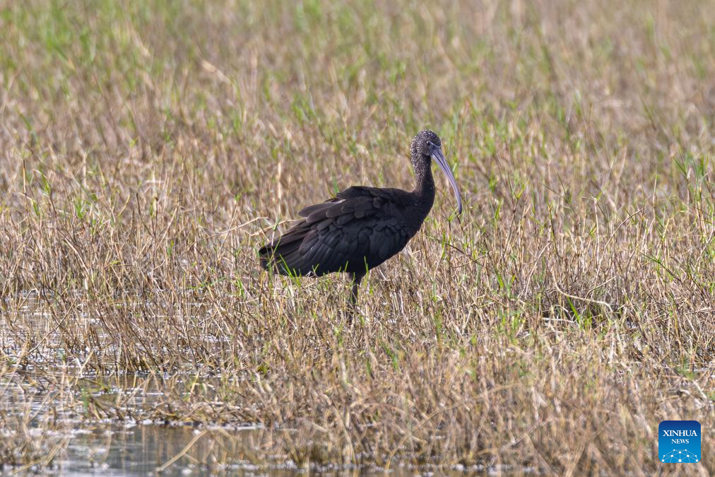 A glossy ibis is pictured at the Haiwei National Wetland Park in Changjiang Li Autonomous County, south China's Hainan Province, Nov. 5, 2025. (Photo by Xue Meili/Xinhua)