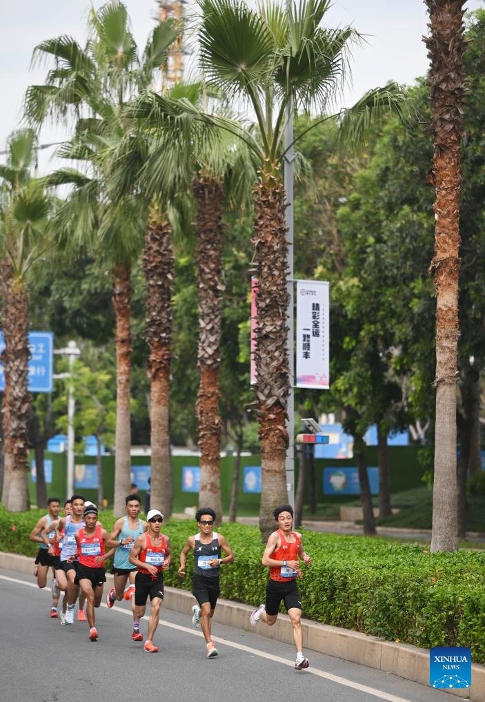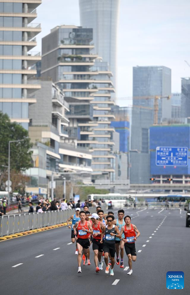 Athletes compete during the men's marathon event at China's 15th National Games in Shenzhen, south China's Guangdong Province, Nov. 15, 2025. (Xinhua/Lian Zhen)