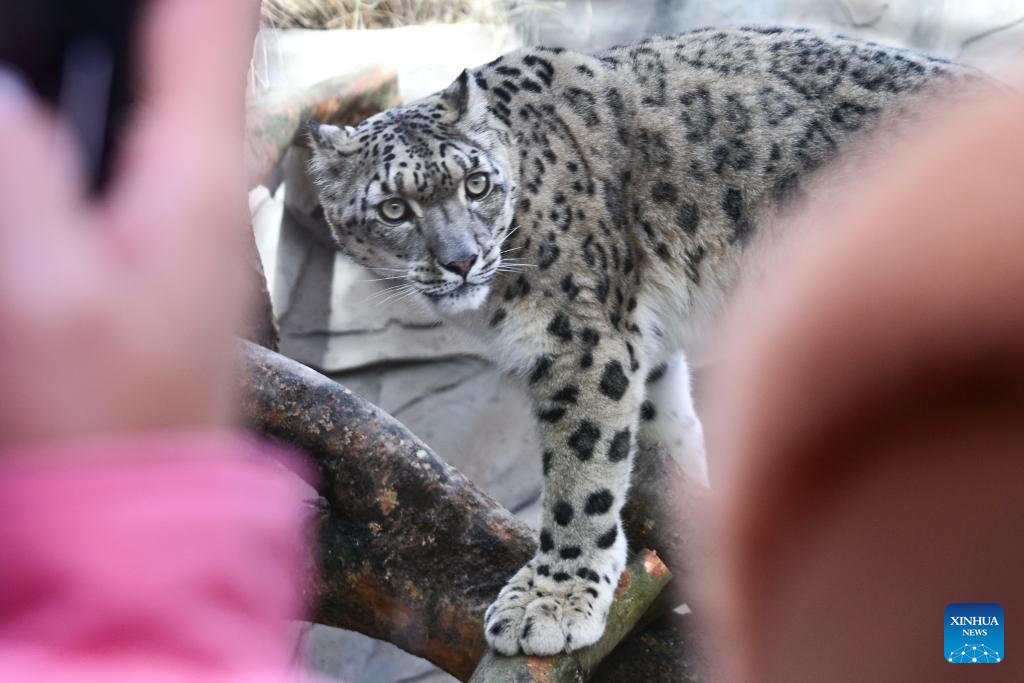Visitors watch a snow leopard at Xining Wildlife Park in northwest China's Qinghai Province, Nov. 15, 2025. The leopard house at Xining Wildlife Park reopened to the public after a month-long renovation. (Xinhua/Qi Zhiyue)
