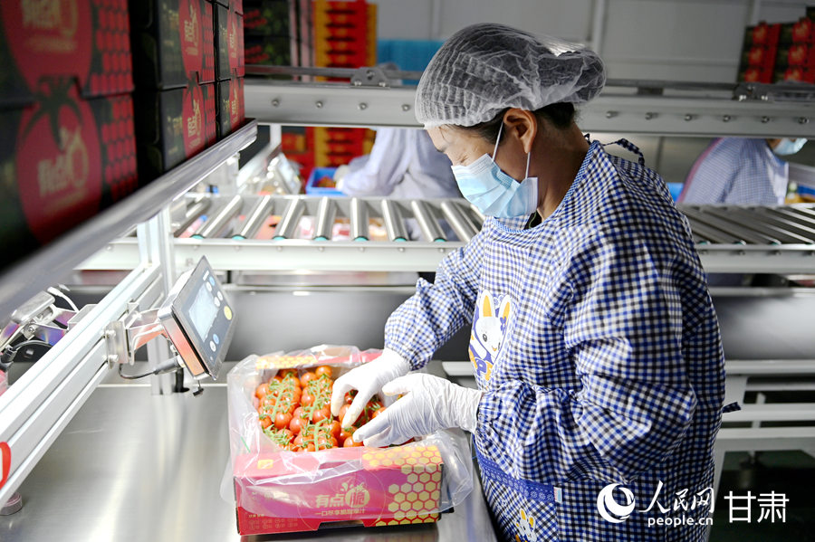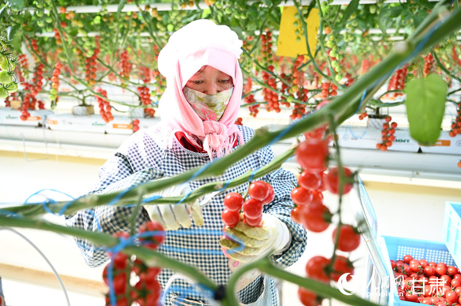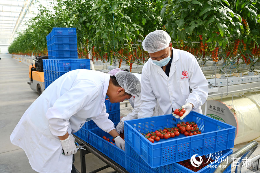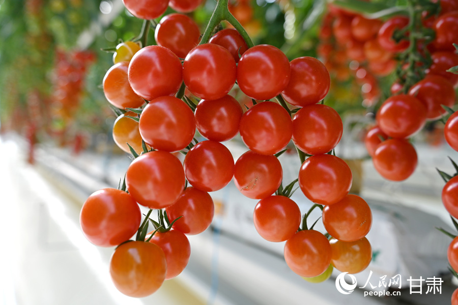 In Ganzhou district of Zhangye city, northwest China's Gansu Province, rows of cherry tomatoes in a smart agricultural industrial park have recently entered their peak harvest season. Inside the park's intelligent glass greenhouses, verdant vines wind along vertical cultivation racks, their branches laden with ripe fruit as workers pick, sort and pack the tomatoes for delivery to markets nationwide.