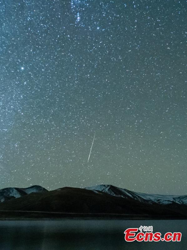 Yamdrok Tso Lake, which means "the emerald lake of the upper pasture", sits at an altitude of 4,441 meters, and is revered as one of the three holy lakes in Xizang. In recent days, the Leonid meteor shower reached its peak, with about 15 meteors visible per hour.