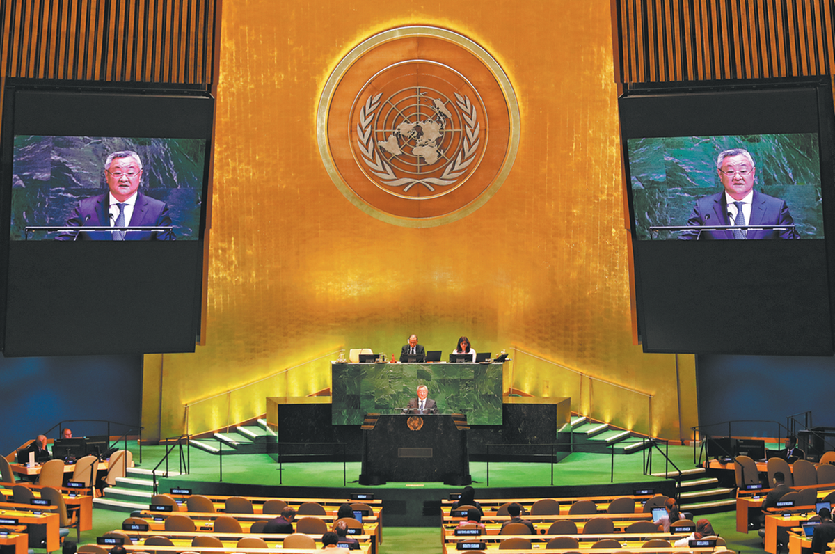 Fu Cong, China's permanent representative to the United Nations, speaks on Tuesday during the UN General Assembly's annual debate on Security Council reform, at the UN headquarters in New York. Fu said that Japan is totally unqualified to seek a permanent seat on the Security Council. XIE E/XINHUA