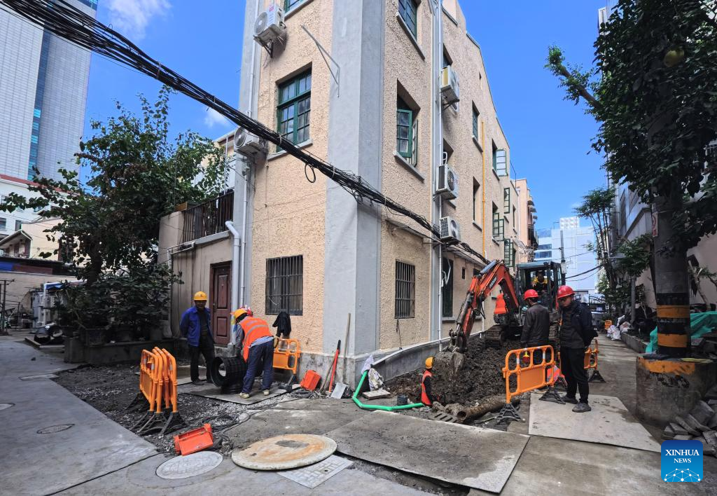 This photo taken on Oct. 31, 2025 shows the construction site of a sewage pipeline renovation project in an old neighborhood in east China's Shanghai. (Xinhua/Fang Zhe)