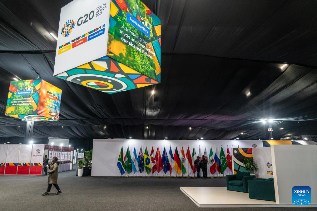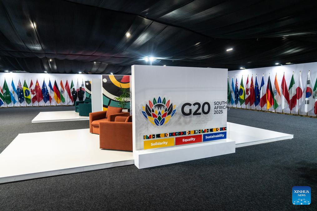 This photo taken on Nov. 17, 2025 shows a scene of the venue for the 20th Group of 20 (G20) Summit in Johannesburg, South Africa. The 20th Group of 20 (G20) Summit will be held in Johannesburg from Nov. 22 to 23. (Photo by Shiraaz Mohamed/Xinhua)