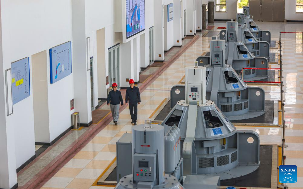 Staff members of the Jiangdu water control project patrol at a pumping station in Yangzhou, east China's Jiangsu Province, March 25, 2025.