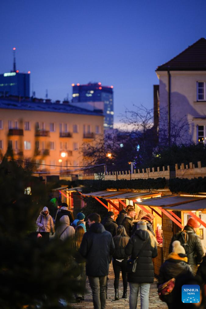 Visitors are seen at the Old Town Christmas Market in Warsaw, Poland during its opening day on Nov. 21, 2025. (Photo by Jaap Arriens/Xinhua)