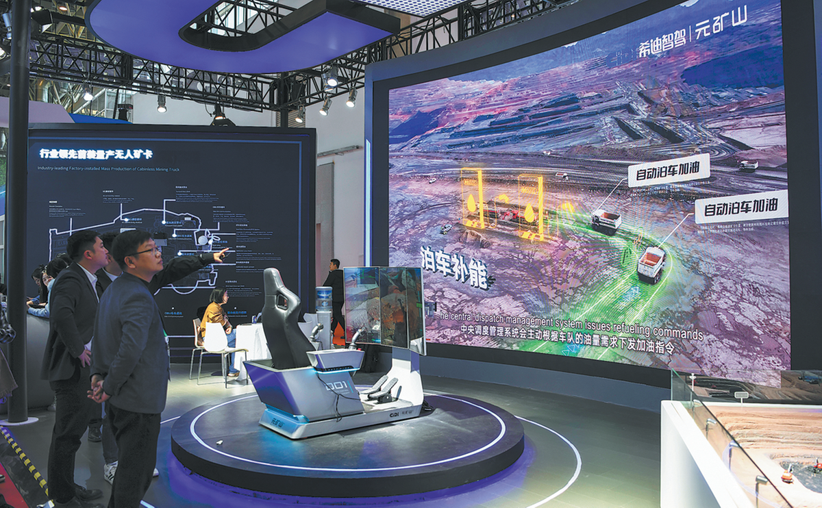 Visitors learn about the Meta Mine System from autonomous driving technology and products provider CiDi during the second China International Supply Chain Expo in Beijing on Nov 27, 2024. ZHANG HAOFU/XINHUA