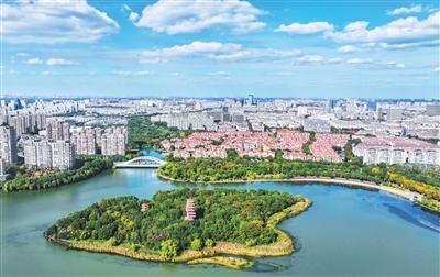 Photo shows the beautiful scenery of Jiyang Lake Ecological Park in Zhangjiagang, a county-level city in east China's Jiangsu Province. (Photo/Shi Borong)