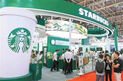 Photo shows the exhibition booth of Starbucks at the third China International Supply Chain Expo (CISCE) in Beijing. (Xinhua/Ding Hongfa)
