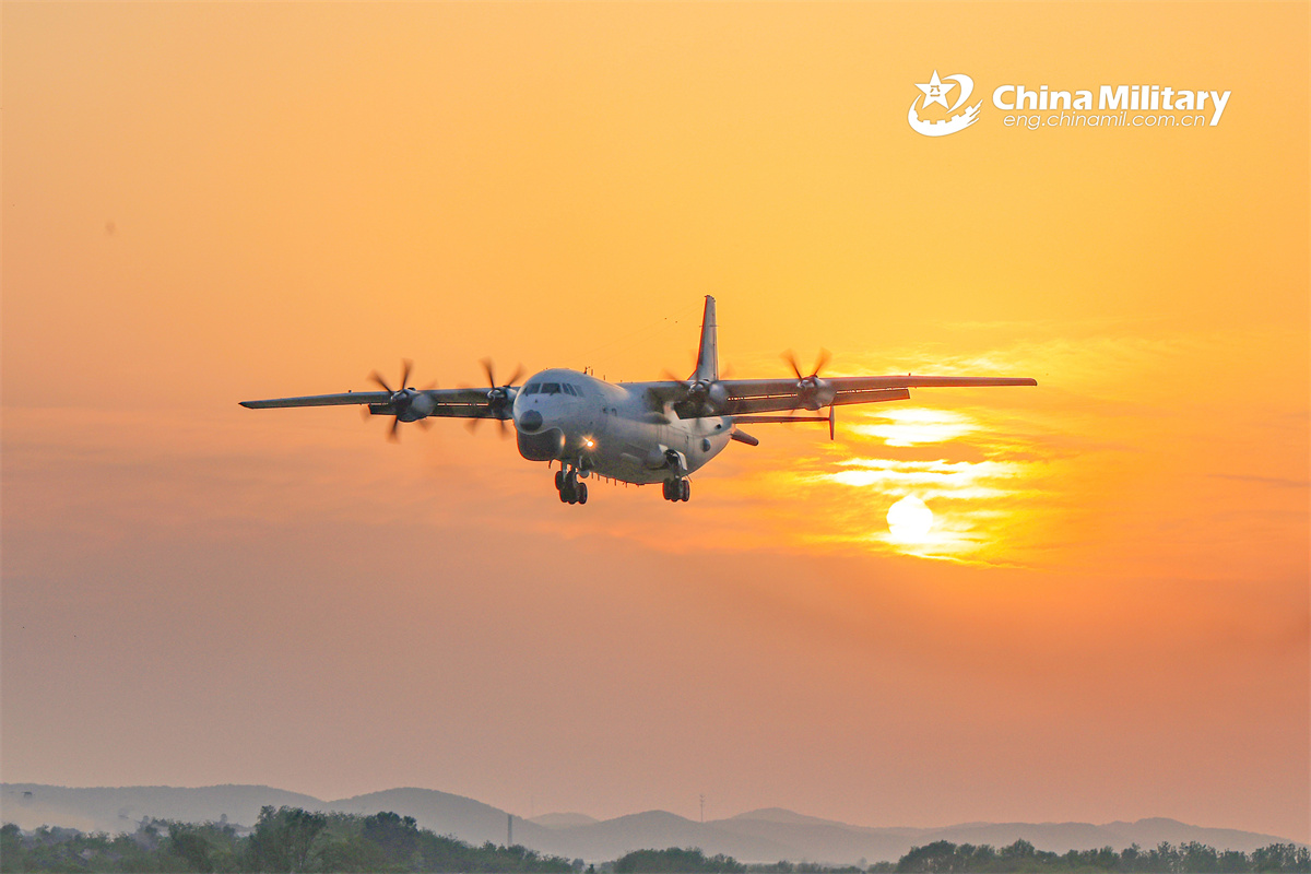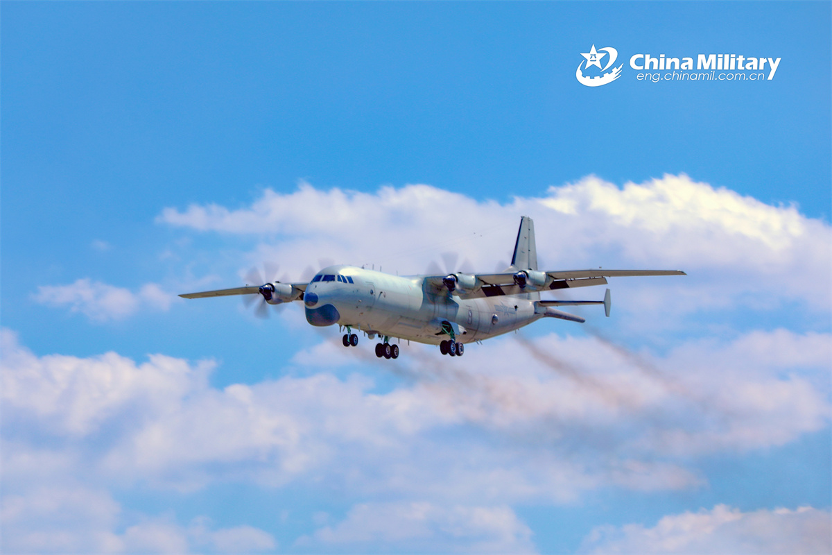 An anti-submarine patrol aircraft attached to an aviation unit under the Chinese PLA Navy takes off for an anti-submarine training exercise. (eng.chinamil.com.cn/Photo by Bu Lingbin)